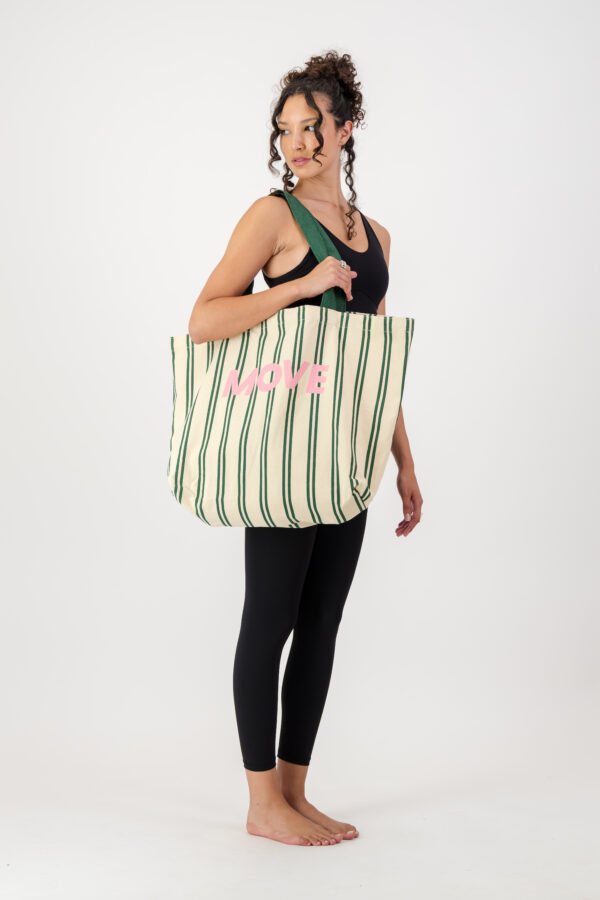 Crafted from heavy-duty canvas that’s stress-tested up to 20kg, this bag is built to last. The reinforced dark green handles prevent discolouration from daily wear, while the magnetic closure keeps your belongings secure on the go.